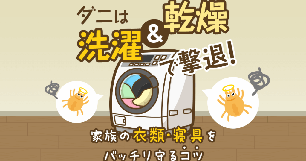 このように高温で洗濯・乾燥することで、ほとんどのダニは死滅します。また、繊維に付着した卵やフンも取り除くことができます。