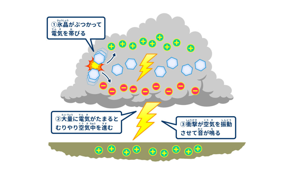 雷を引き起こす基本的なメカニズムは以下の通りです: