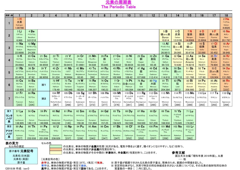 この構造のおかげで、私たちはどの元素が金属か非金属か一目で判断できるため、新しい材料や化合物の研究にも応用されています。