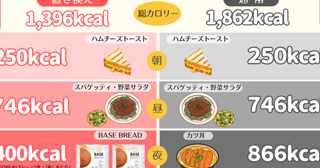 この計算式によって導き出されたBMRは、私たちが生きていくために必須なカロリー摂取量となります。