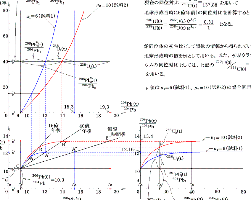 | ウラン-238 | 約45億年 | U-Pb法による岩石年代測定 |
