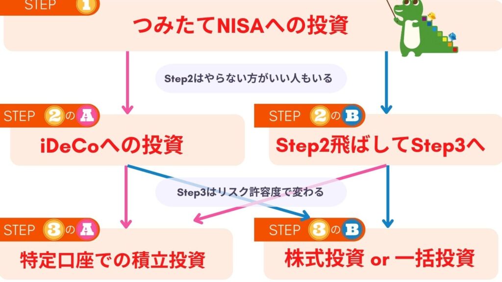 さらに、自身のお金で購入する商品(株式、債券、不動産など)について検討し、自分のリスク許容度と合わせて選びましょう。