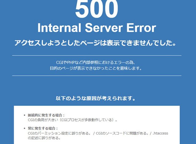 | “Internal Server Error” | サーバー内部で不具合が発生しています。 |