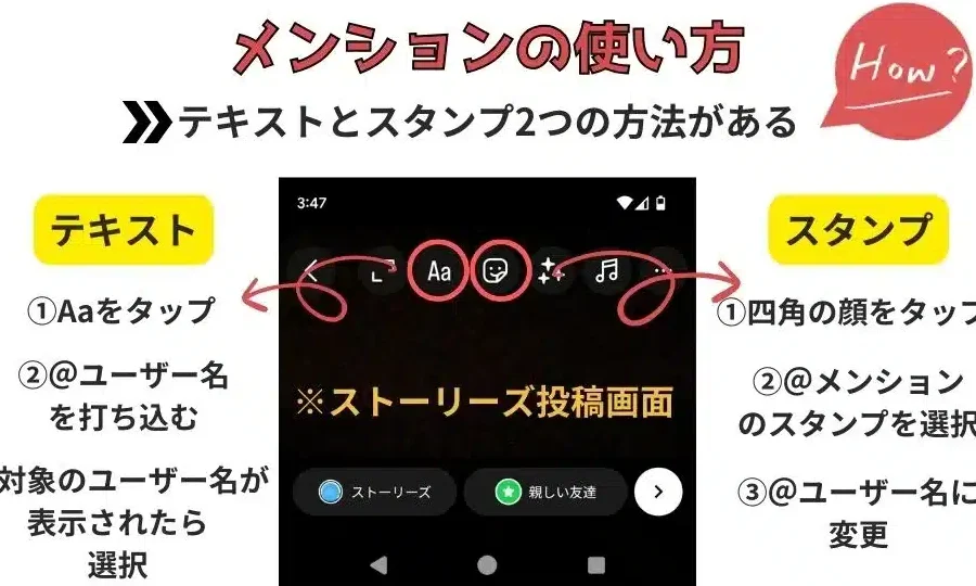 ストーリーでのメンション使い方ガイド