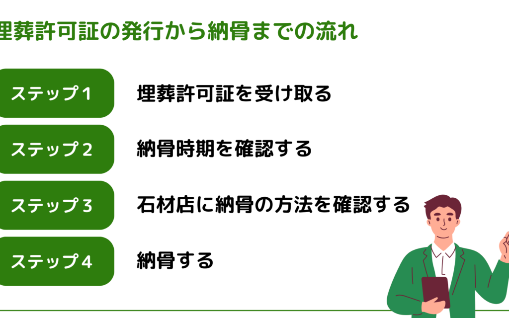 提出した書類が問題なく審査されれば、数日内に埋葬許可証が発行されます。この許可証は埋葬時に必ず持参しなければならない重要な文書です。