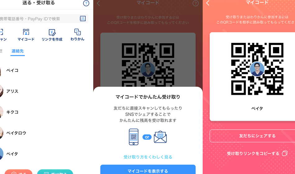 - QRコード: 相手方が提示したQRコードをスキャン。
