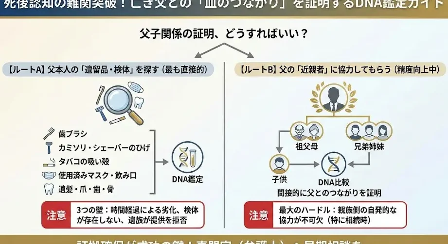 - 毛髪や皮膚細胞: この方法は特定の場合に有効ですが、それぞれ収集する際の注意点があります。例えば、毛髪の場合は根元から採取することが重要です。