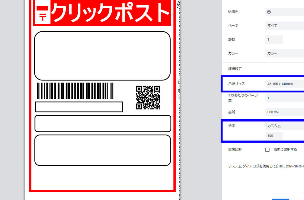 これらの準備が整ったら、次は実際にクリックポストで印刷できる状態になります。