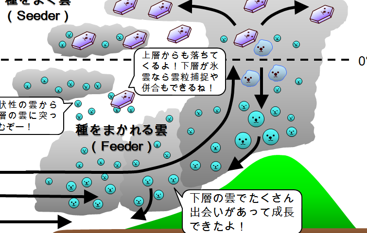 - 混合対流: 上昇する熱風と下降する冷風との相互作用によって発生し、それぞれ異なる高度から水蒸気を取り込むことでさらに成長します。