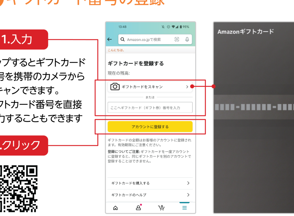 アカウントへのギフトカードの追加手順
