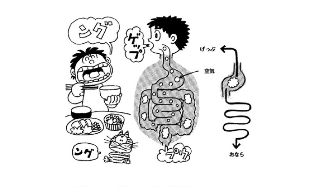 - ガス蓄積: 食事後、消化管内でガスが蓄積します。
