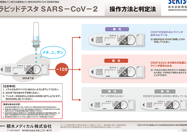 - 結果判定: 時間経過後、結果表示窓を見ることで陽性または陰性かどうか確認します。