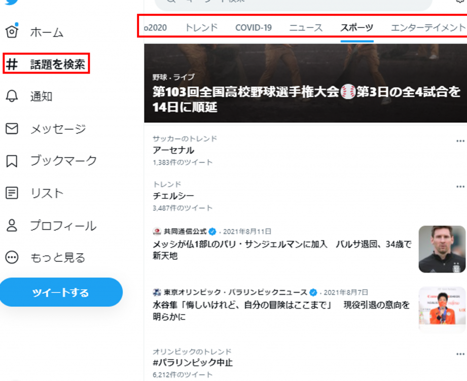 - 興味深いトピックをクリック: 表示されたリストから気になるトピックを選ぶと、その関連ツイートやモーメントを見ることができます。