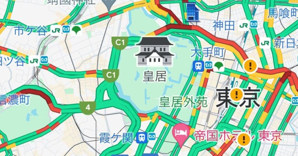 Googleマップでは、リアルタイムでの混雑状況を簡単にチェックできます。地図上で目的地を選択すると、その場所の現在の混雑度が色分けされた表示で示されます。この機能を使うことで、人が多い時間帯を避けることができるため、大変便利です。