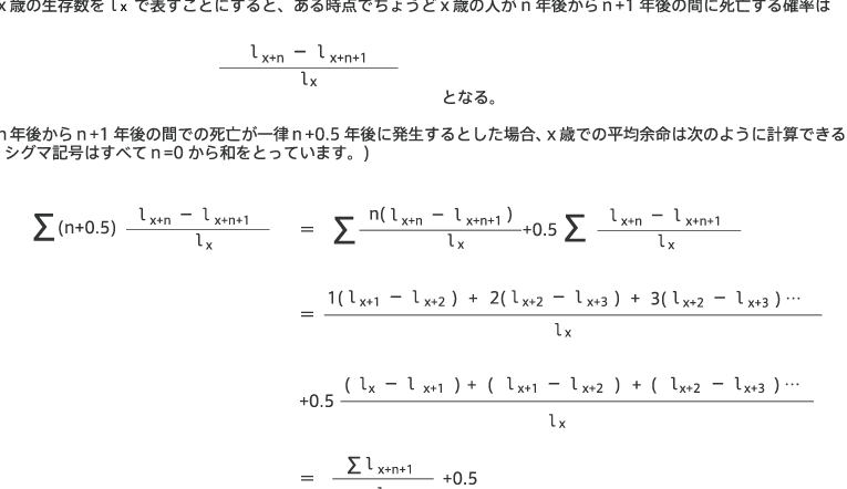これらの要素は、生存曲線として視覚化でき、その結果から各年齢別の平均余命を導き出すことが可能です。