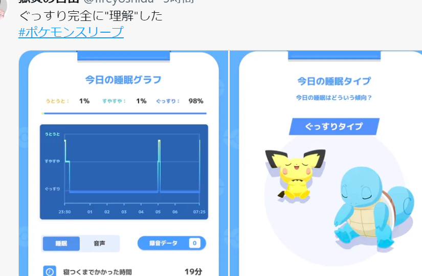 さらに、「ぽけもんすりーぷ」のスリープトラッキング機能と連携させることで、自分自身の睡眠データを確認しながらより良い習慣を築いていくことが可能です。この機能によって、自分がどれだけ深い眠りにつけているかや、中途覚醒してしまう要因などを見ることができ、その結果改善策も見えてきます。