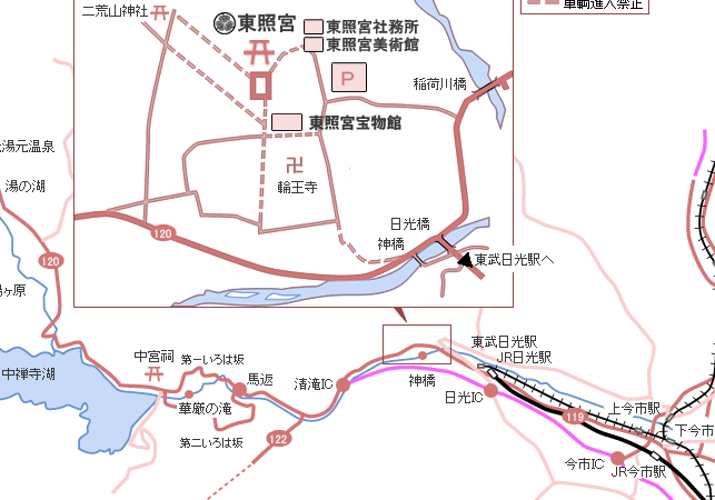 日光東照宮へ行くための具体的なルートは以下の通りです。