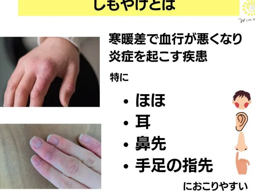 寒い季節になると多くの人が悩む症状がしもやけです。私たちはこの不快な状態を避けたいと思っていますが、既に発症してしまった場合はどうすれば良いのでしょうか。この記事では、「しもやけはどうやって治すの?」という疑問に答え、効果的な治療法や予防策について詳しく解説します。