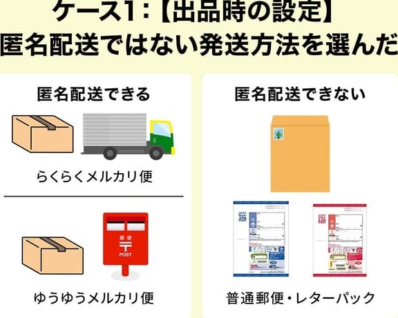 - 商品購入時の選択:購入者が商品を買う際、「匿名配送」を選択します。