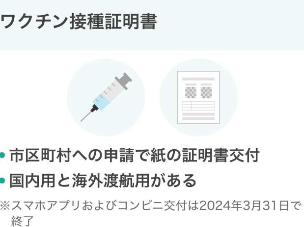 - 国内外の旅行: 多くの国では入国時にワクチン接種証明書を提示することが求められています。また、航空会社によっても搭乗手続きで必要とされる場合があります。