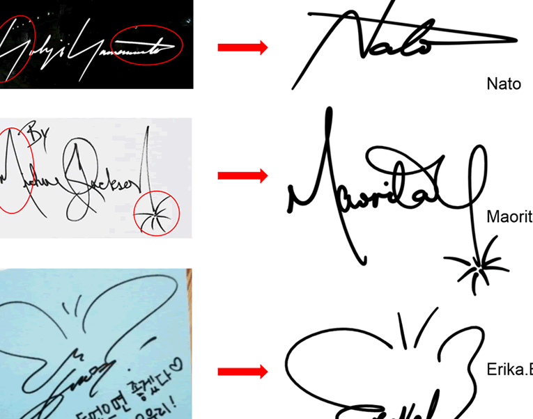 - ユニークな文字構造: 一部の有名人は文字を変形させたり、新しい形状で組み合わせたりして、他とは違う印象を与えています。