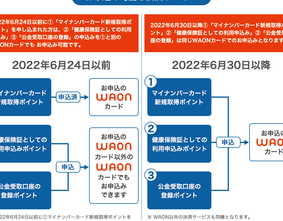 | マイナンバーカード5000ポイント waon | 指定された店舗 | マイナンバーカード登録後 |