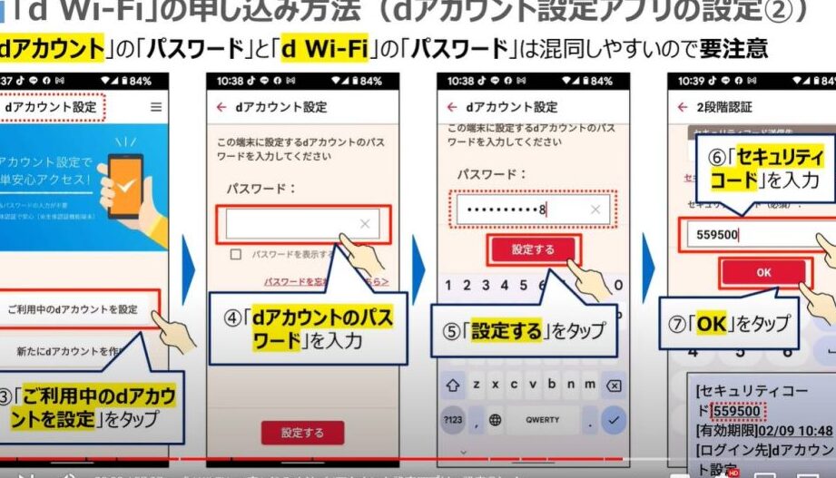 - アプリを開く: インストールした「D Wi-Fi」アプリを起動し、ログイン情報(IDとパスワード)を入力します。