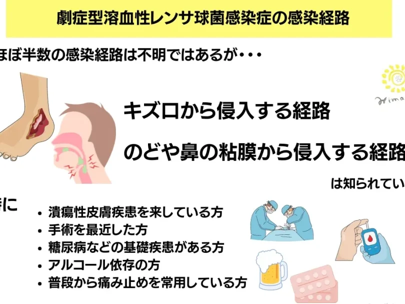 溶連菌は、主に感染した人との接触や飛沫を通じて感染します。この細菌は、咳やくしゃみによって放出される微小な水滴を介して空気中に広がります。私たちがこれらの飛沫を吸い込んだり、直接的な接触をすることで感染リスクが高まります。また、溶連菌は皮膚の傷からも侵入しやすいため、注意が必要です。
