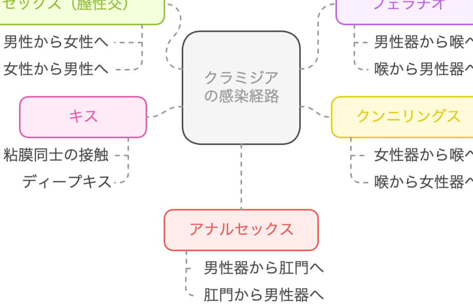 クラミジアの主な感染経路を以下に示します。