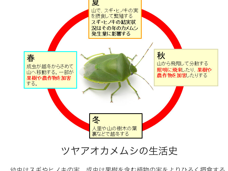 - 天敵となる昆虫(例えばテントウムシ)を利用したり、忌避植物(ニンニクなど)を植えたりすることでカメムシの侵入を防ぎます。