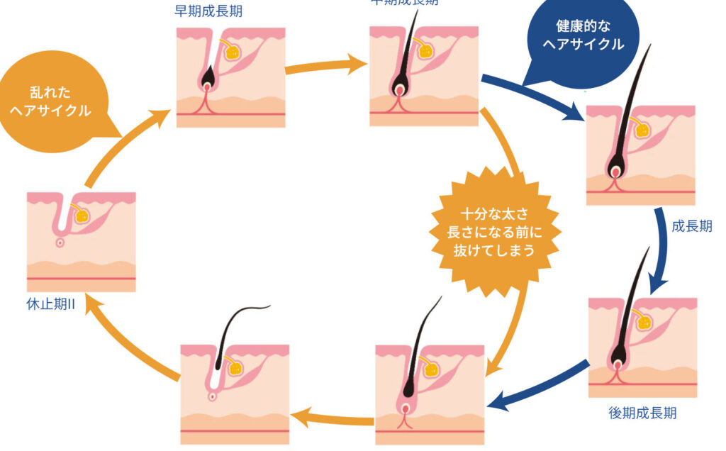 髪には特有の成長サイクルがあります。このサイクルは以下の3つの段階から構成されています: