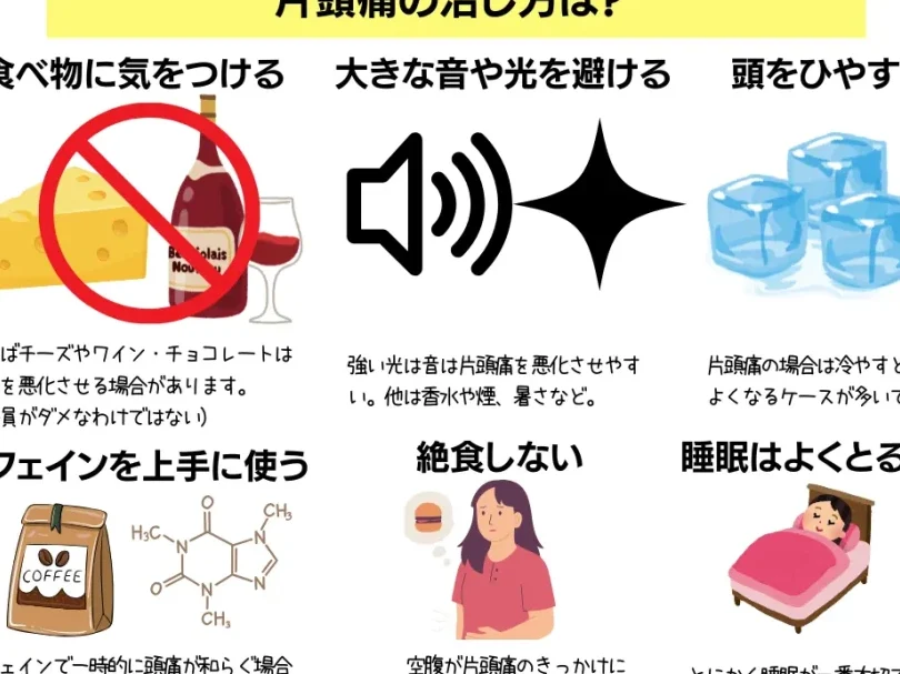 十分な水分補給も忘れてはいけません。脱水は頭痛の原因となるため、水やお茶などで意識的に水分を摂取しましょう。また、バランスの取れた食事によって体調管理にも気を配りましょう。特にマグネシウムやビタミンB2が含まれる食品(ナッツ類や緑黄色野菜)は偏頭痛予防にも役立ちます。