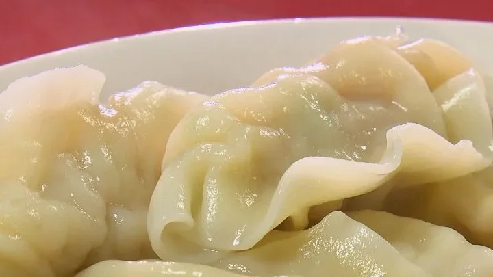 - 箸でゆっくりと水餃子をつかみます。