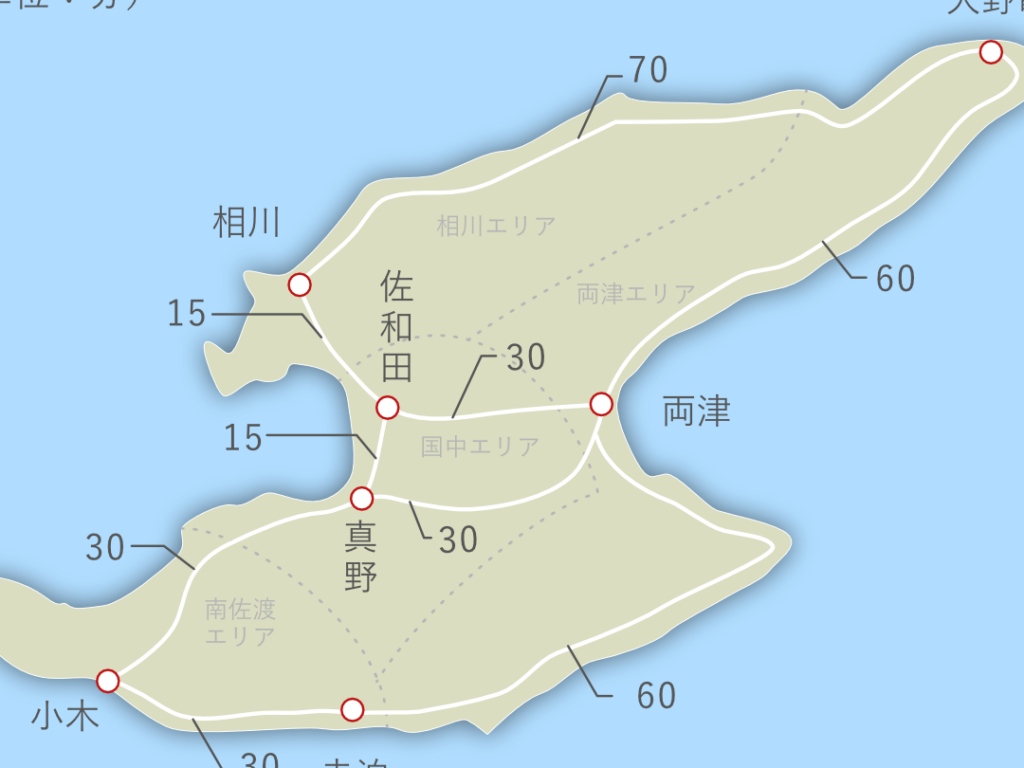 - 相川地区:タクシーやレンタカーによるアクセスが便利で、特に歴史ある相川金山や周辺の美しい風景を見るためには最適です。