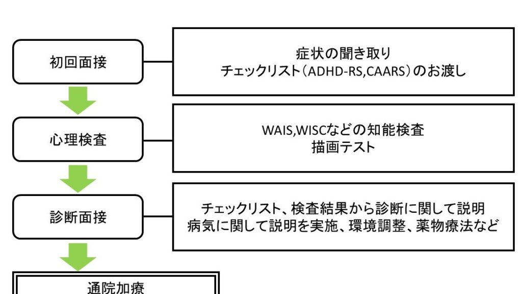 ADHD の診断には専門的な評価が必要です。通常、この評価には以下のステップがあります: