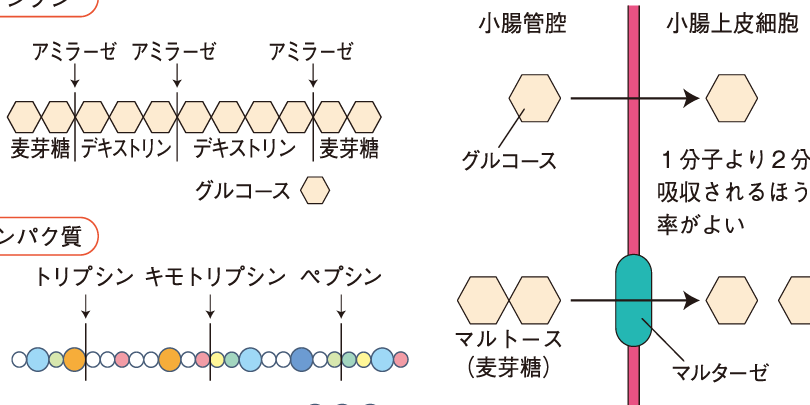 - アミラーゼ: グルコース間の結合を形成する際に働く酵素です。