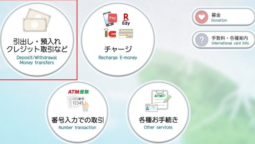- カードまたは番号入力: ATMにアクセスし、借入時に受け取ったカードまたは契約番号を入力します。