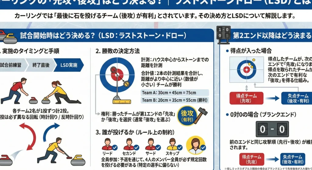 カーリングの試合では、先攻と後攻が非常に重要な役割を果たします。しかし、カーリングの先攻後攻はどうやって決めるのかをご存知でしょうか。このルールは試合の戦略や結果に大きく影響します。私たちはこのプロセスを理解することで、より深くカーリングを楽しむことができます。